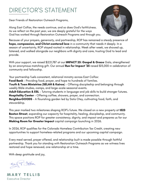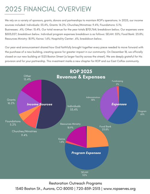 We are deeply grateful for all we have accomplished and excited for what lies ahead in 2026. Please stay tuned for updates on our new building, capital campaign, and the impactful ministry work on the horizon.